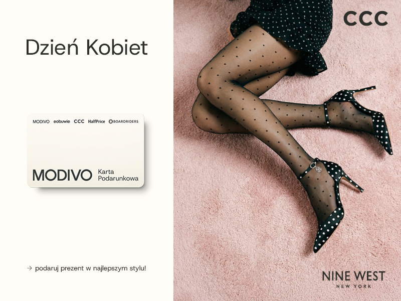 Umówmy się – wybór idealnego prezentu to nie lada wyzwanie! Trafienie w 'ten konkretny' odcień błękitu czy wymarzony fason butów bywa trudne. Dlatego mamy dla Ciebie rozwiązanie idealne na Dzień Kobiet: Kartę Podarunkową MODIVO! Ona wybiera swój wymarzony model, a Ty zbierasz laury za najlepszy prezent pod słońcem. Kartę Podarunkową MODIVO znajdziesz przy kasie. Wyjątkowy prezent dla wyjątkowej kobiety!