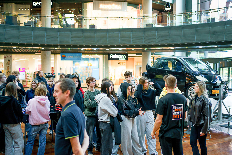 Udział młodzieży lubińskich szkół i klientów galerii w akcji „Trzeźwość na drodze” w Cuprum Arena, podczas którego będą mogli skorzystać: